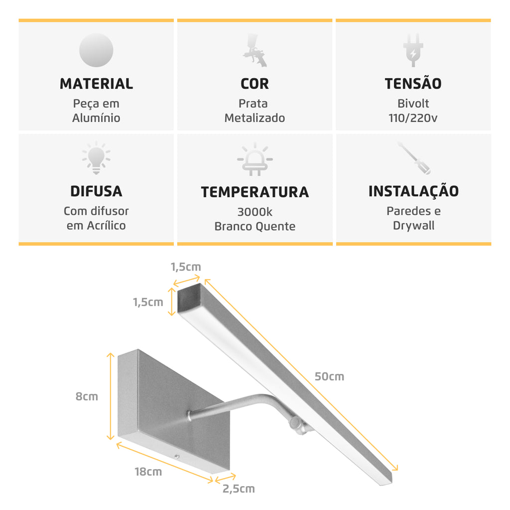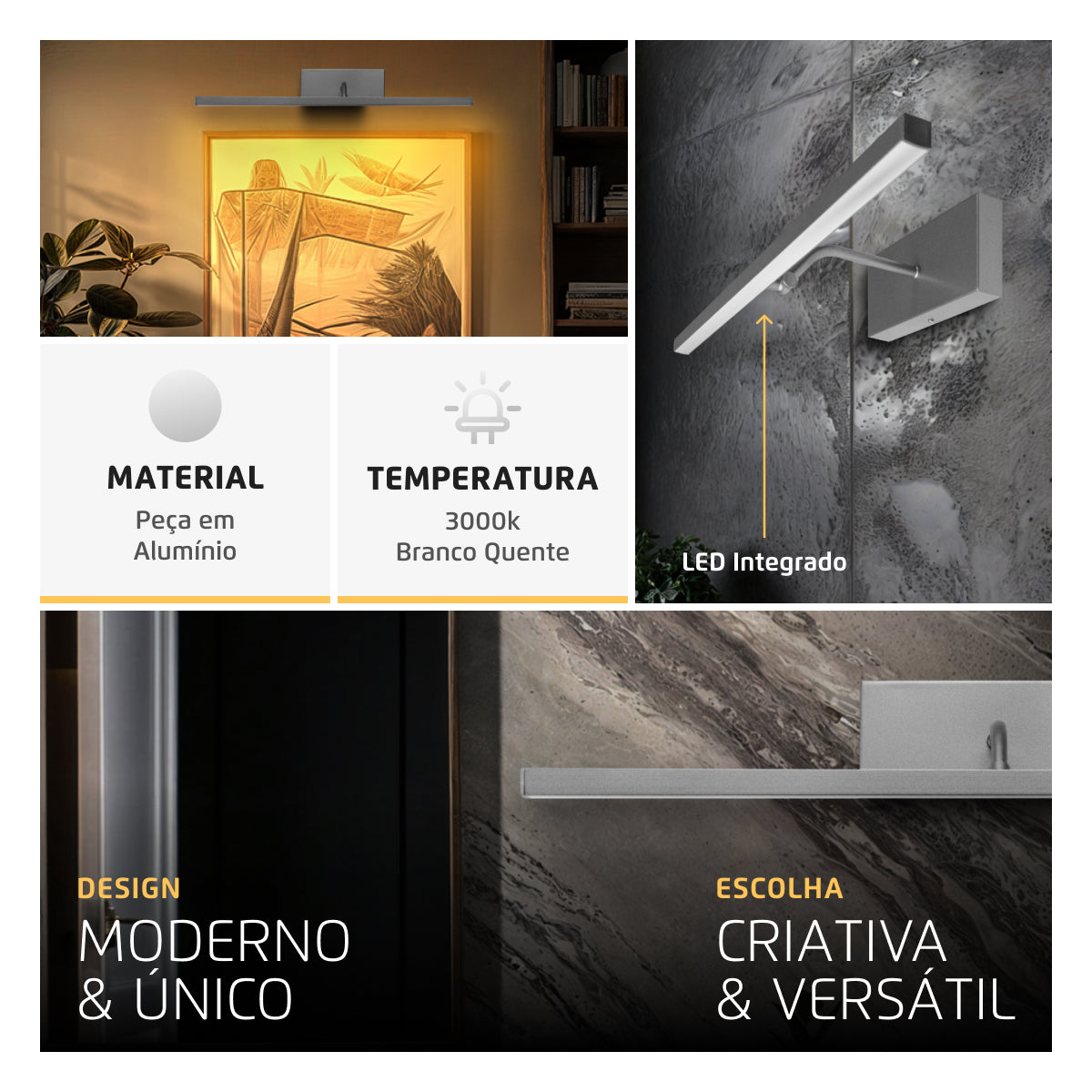 A arandela Quadro Perfil Led 6W 3000K Prata Metalizado é uma peça de iluminação sofisticada que melhora a experiência diária de cuidados pessoais. Com um design elegante e contemporâneo, esta arandela é projetada para ser instalada abaixo ou ao redor do espelho, proporcionando uma luz suave e direcionada.