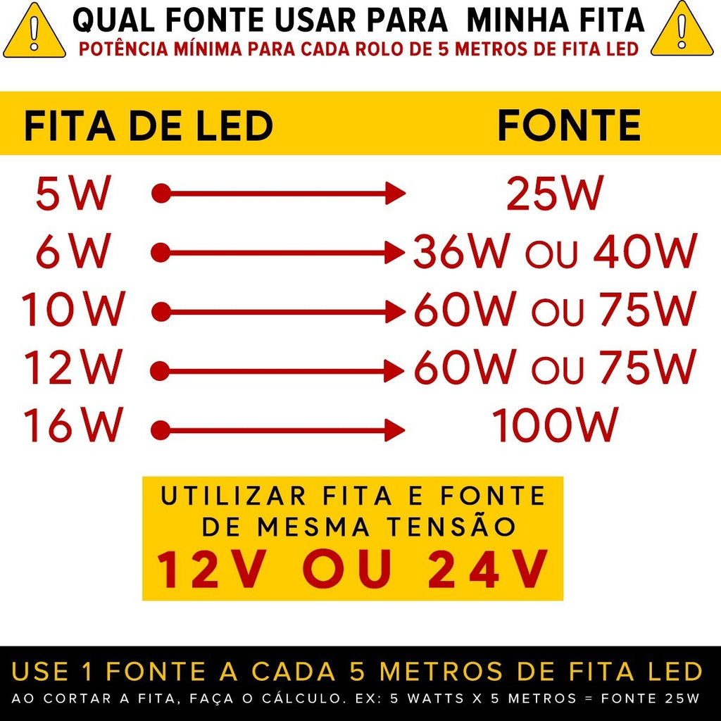 - Especificação dos LEDs: 60 LEDs SMD2835/m