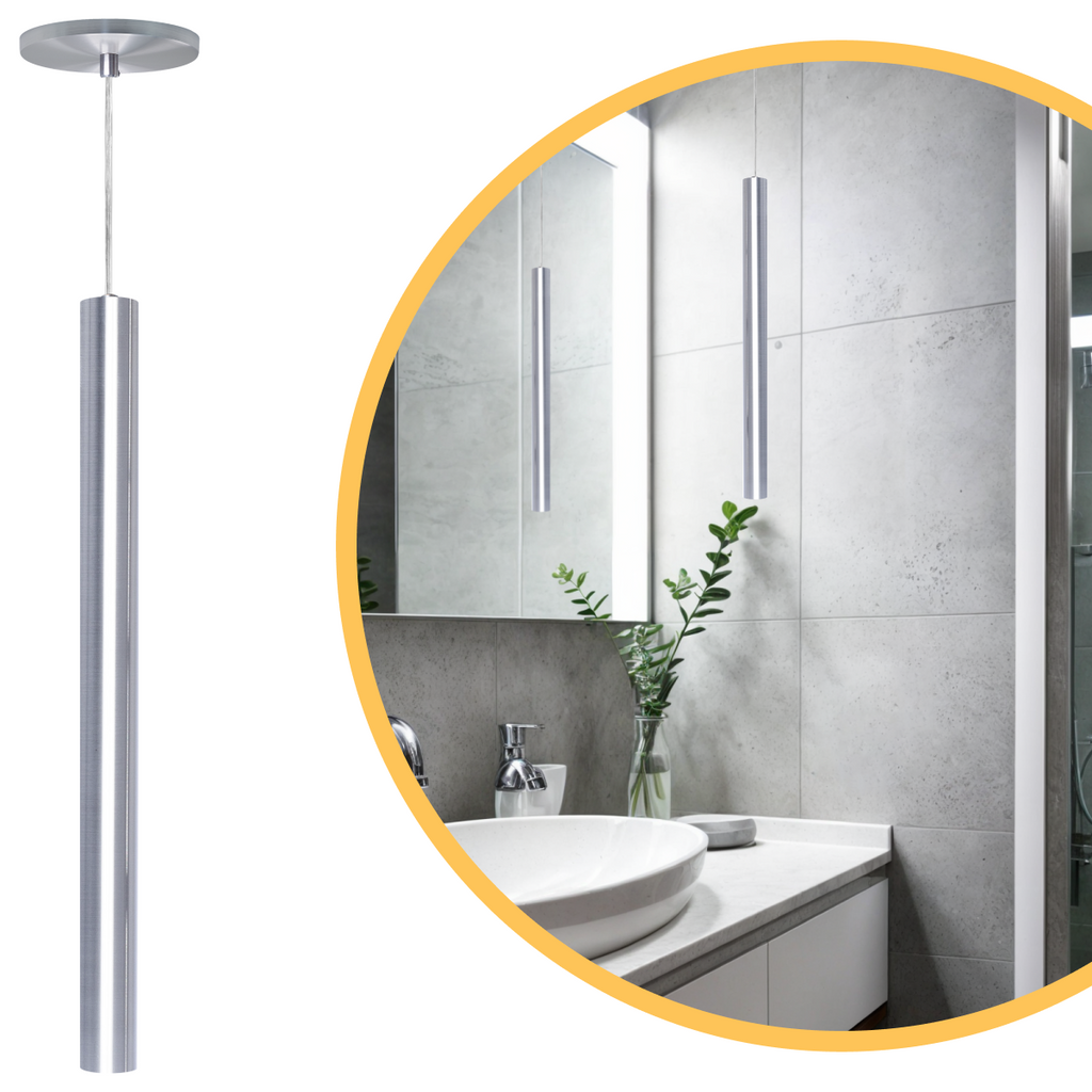 Pendente Luminária Tubo Alumínio Escovado / Prata – 50 cm