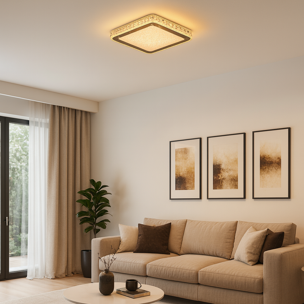 O Plafon LED Estrelado com moldura espelhada é a escolha perfeita para quem busca unir modernidade, aconchego e um toque de luxo em seus ambientes.