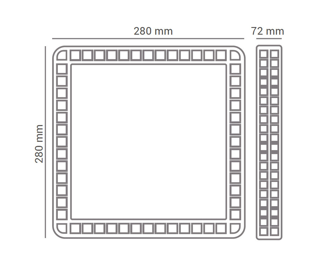 - DIMENSÕES: 280 x 280 x 72mm